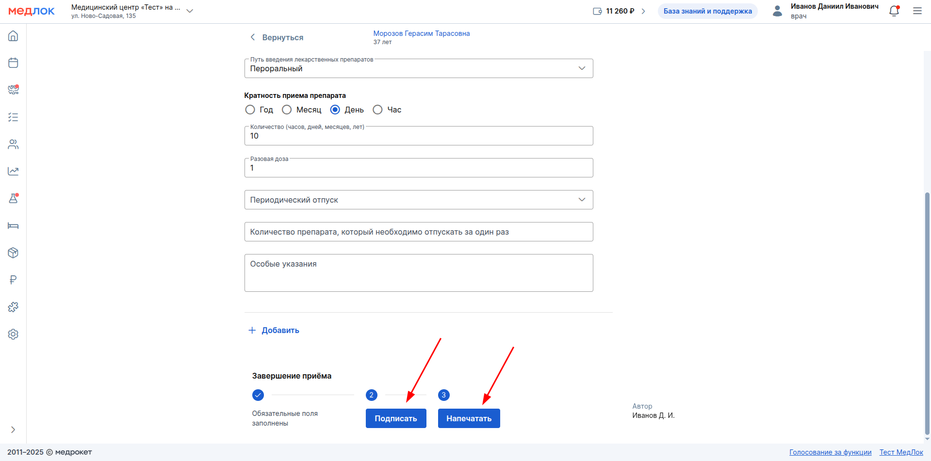 Рецепт также можно распечатать для пациента. Чтобы распечатать документ, нажмите «Напечатать».
