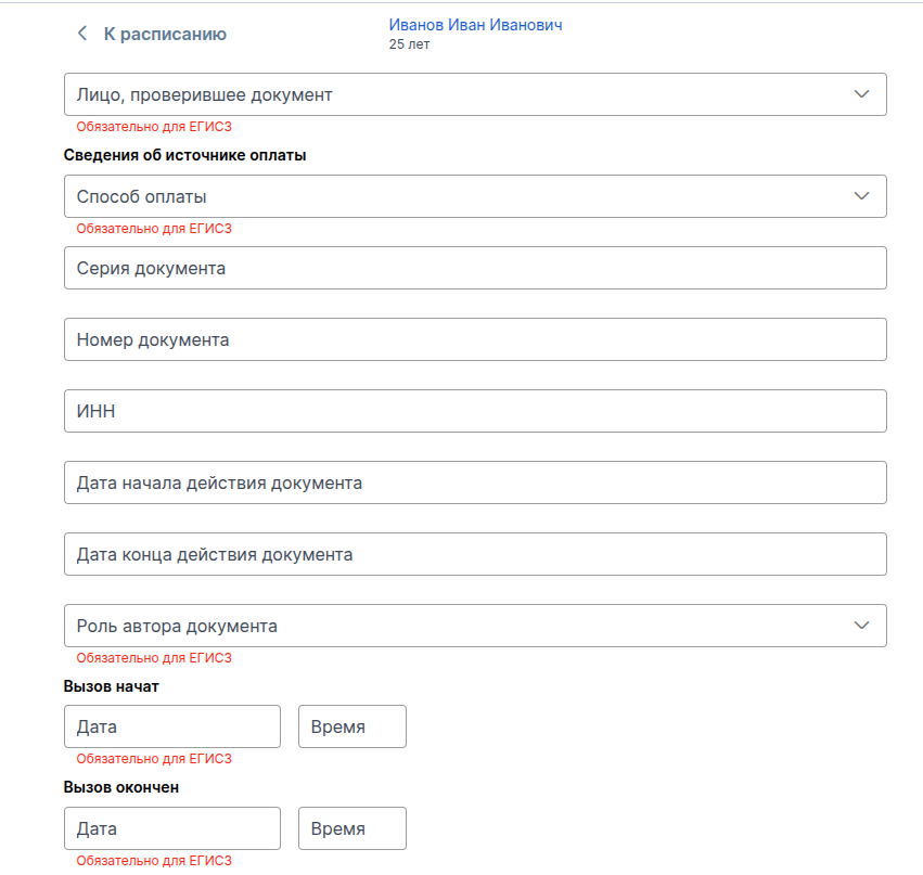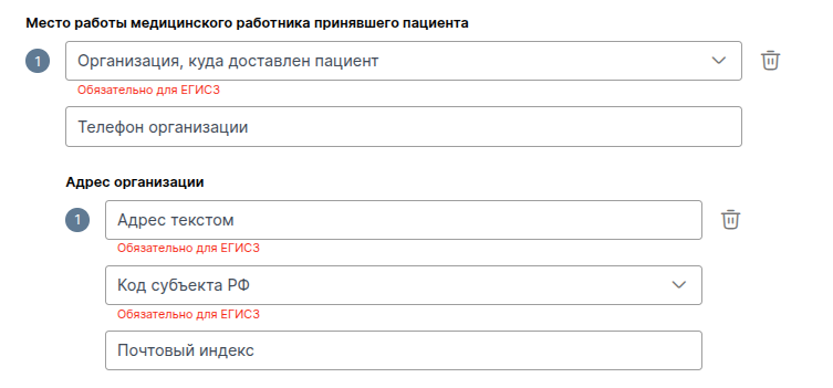 • Все обязательные поля будут подсвечены как Обязательно для ЕГИС3 при подключенном модуле ЕГИС3.