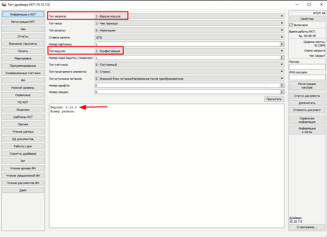 Проверка совместимости прошивки кассы и новой версии драйвера