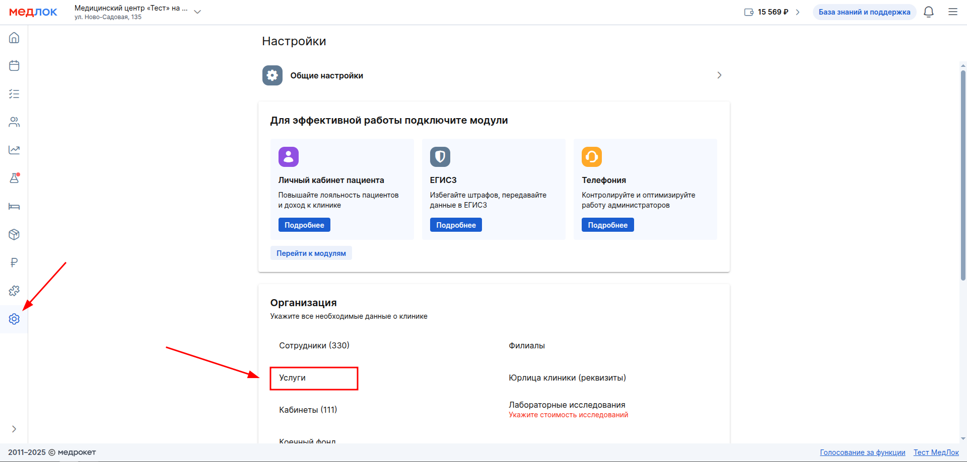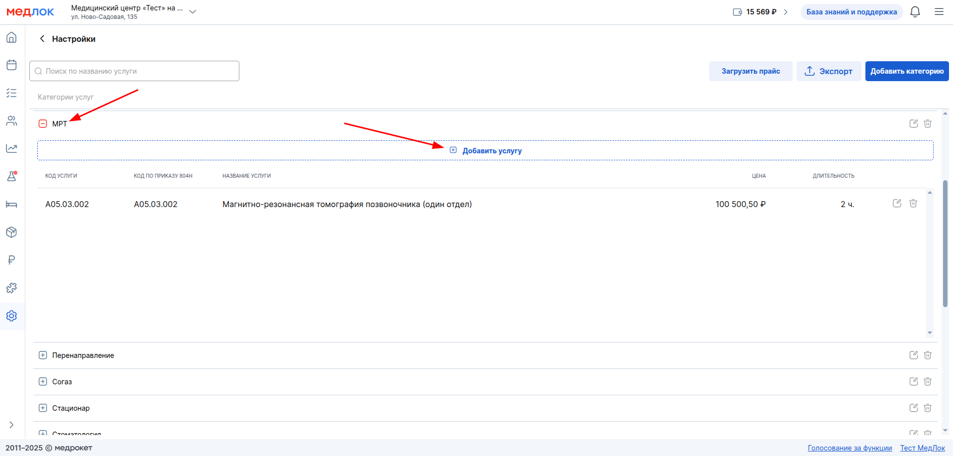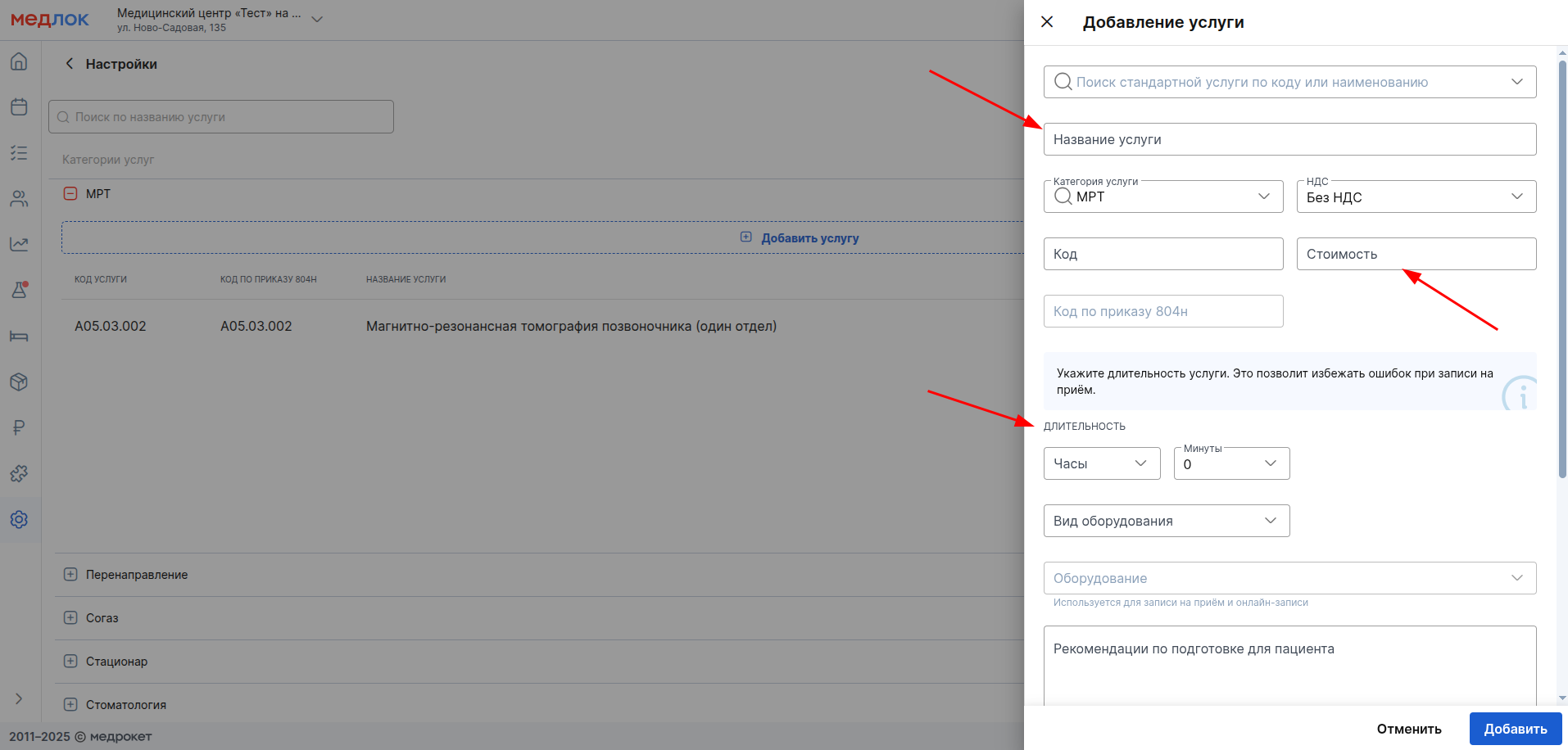 Для полноценной работы в МИС МедЛок добавьте услуги вашей клиники.