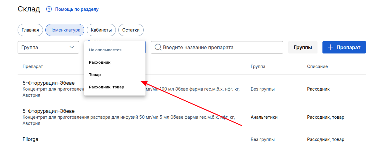 Ранее при добавлении товаров в номенклатуру и остатки не было возможности среди других позиций отделить товар от расходника, из-за чего было неудобно анализировать их количество. Для вашего удобства мы добавили: