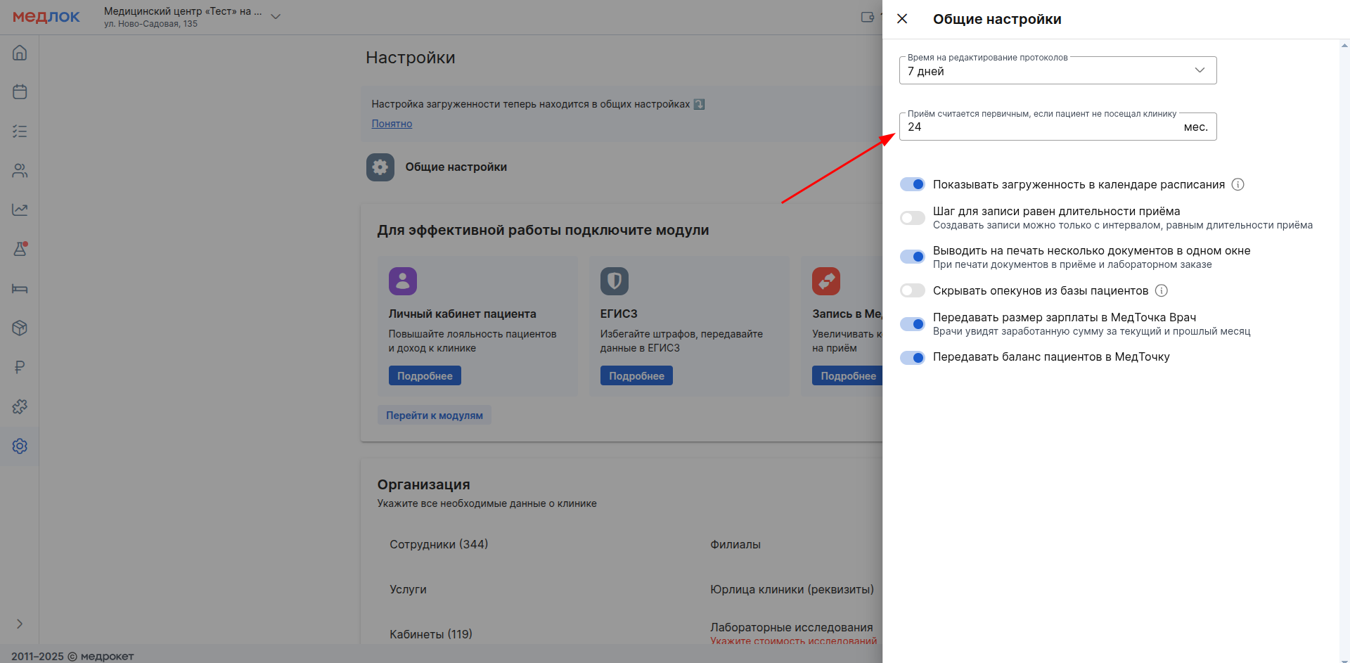 Добавили возможность выбрать нужный клинике период, после которого пациент вновь считается первичным. Обновилась и работа меток на записях в расписании.