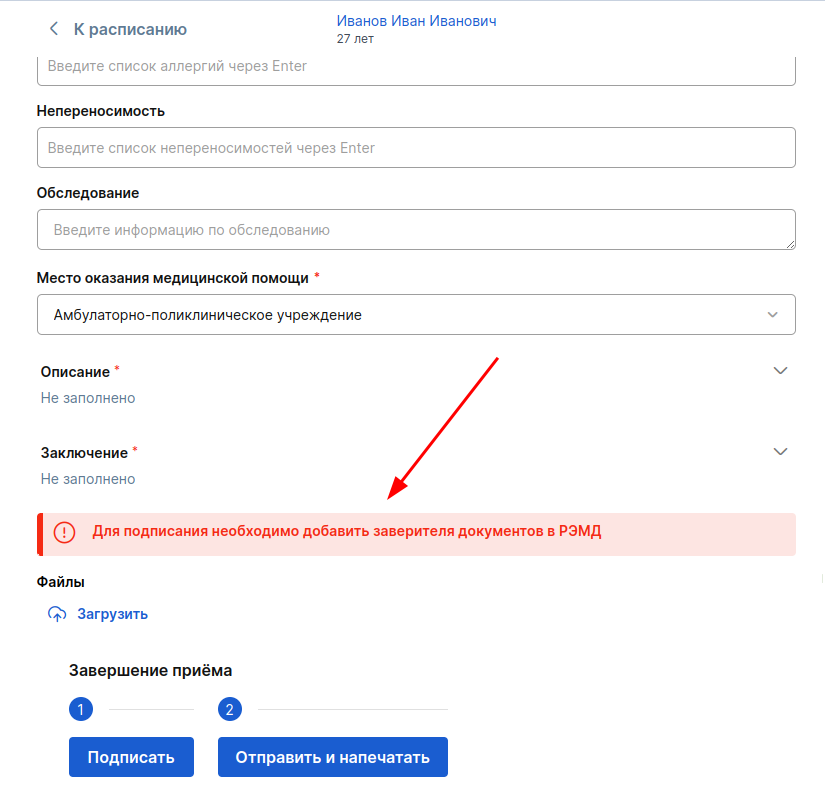 - Нет добавленного заверителя документов в РЭМД.
