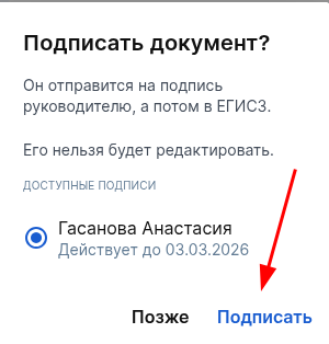 Подписание документов в разделе «ЕГИСЗ»