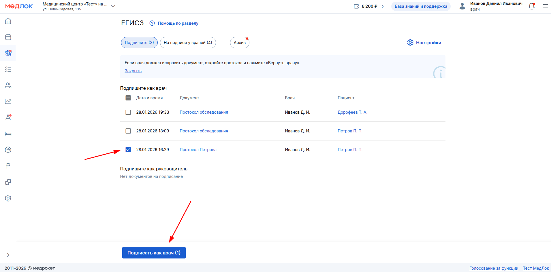 - Если доктор является руководителем клиники, как ему подписывать протоколы?