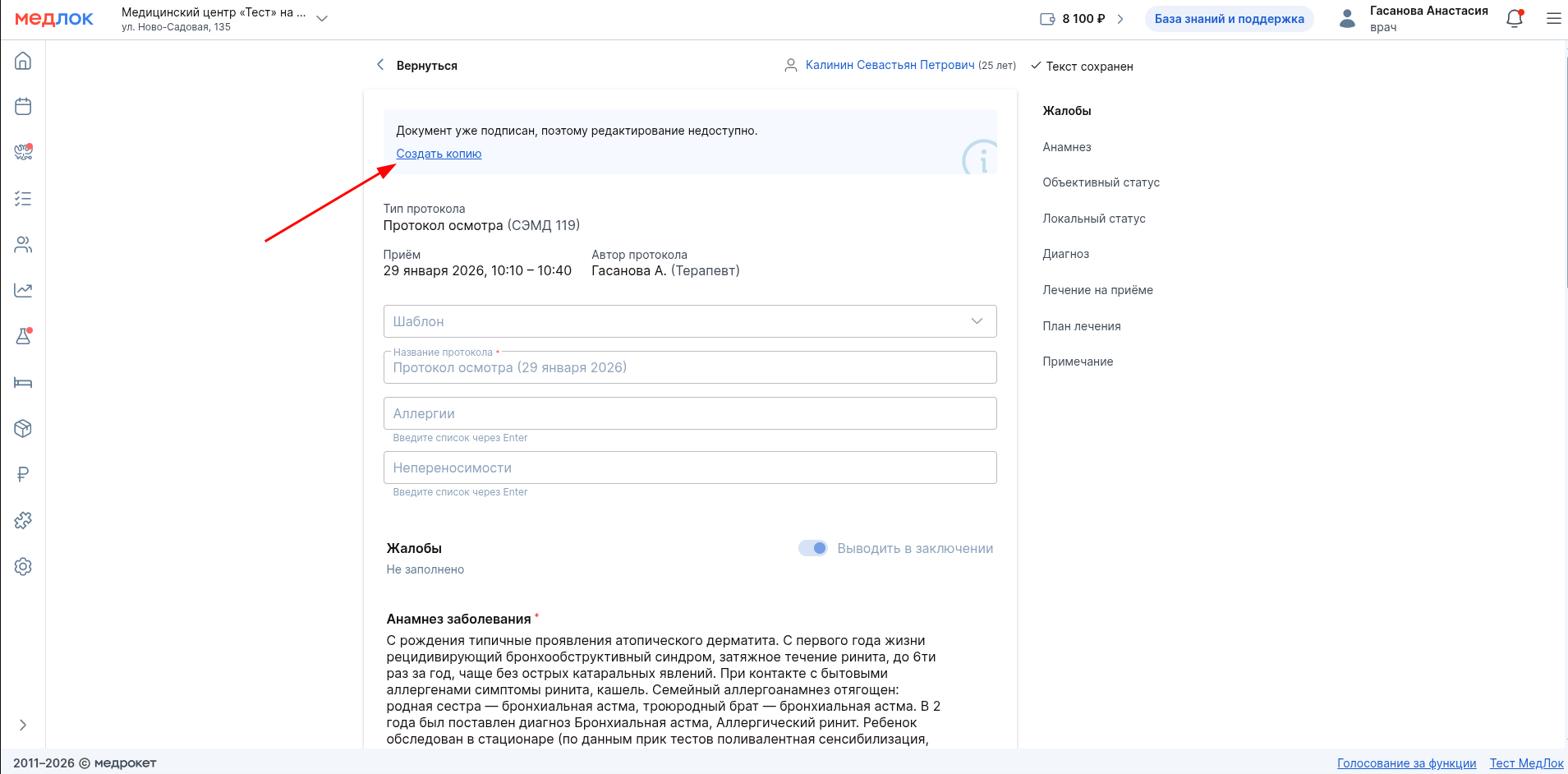 Важно! После того как вы подпишете протокол, его нельзя будет отредактировать. Для внесения изменений вы можете создать копию документа.
