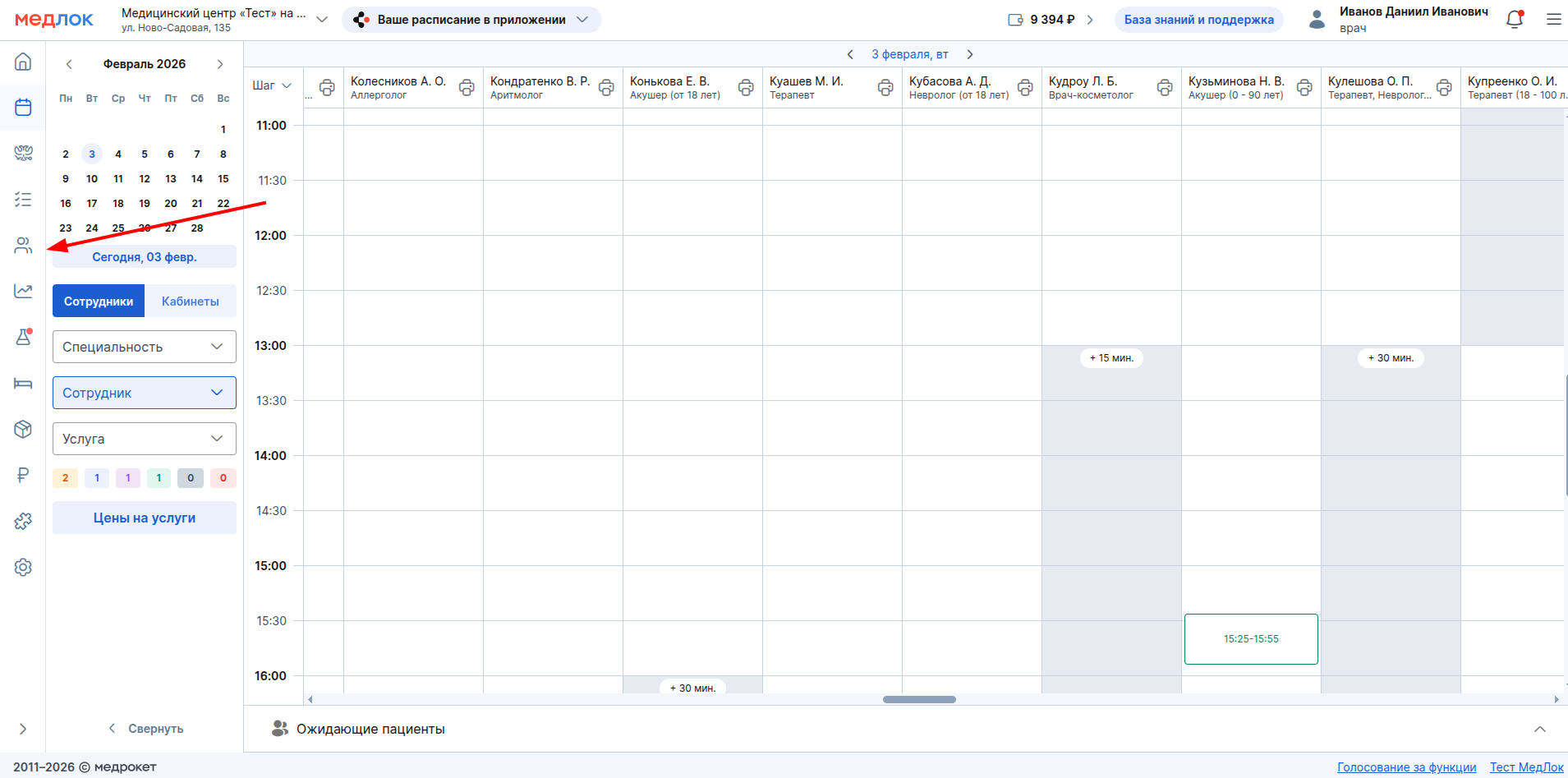 Чтобы перейти в раздел «Пациенты» нажмите на соответствующую кнопку в левой части интерфейса МедЛока.