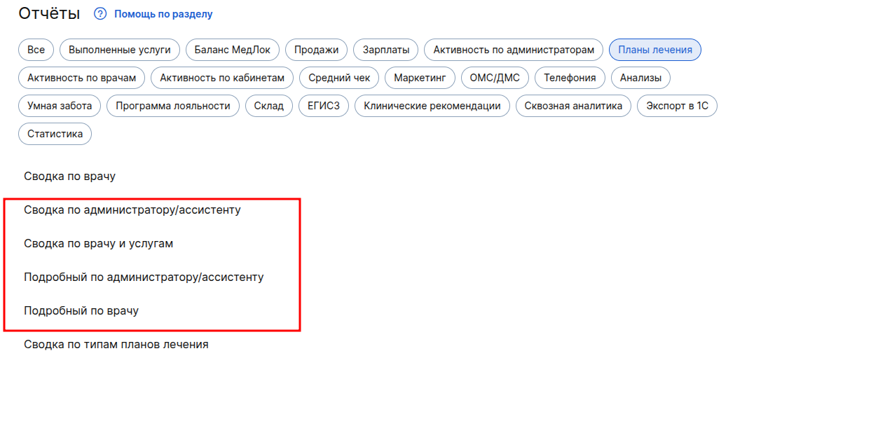 - Дополнения отчетов данными по стационару (по планам лечения: