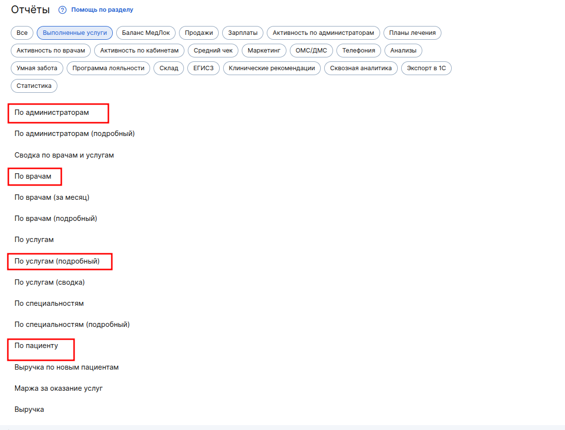 Данные о заработной плате за оказанные услуги в стационаре доступны в трёх основных отчетах: