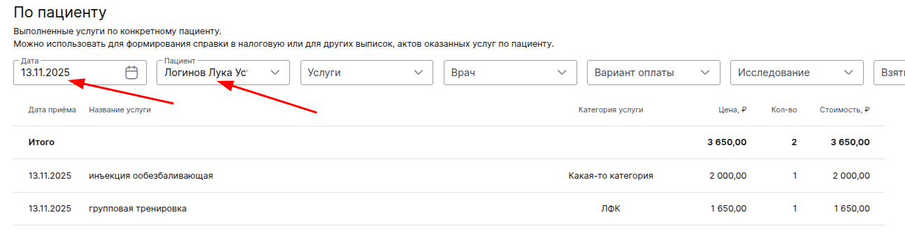 ) в заданный период фильтра отчета, без привязки к оплате. Период госпитализации при этом не имеет значения — система ориентируется именно на дату выписки, так как именно в этот момент формируется начисление.