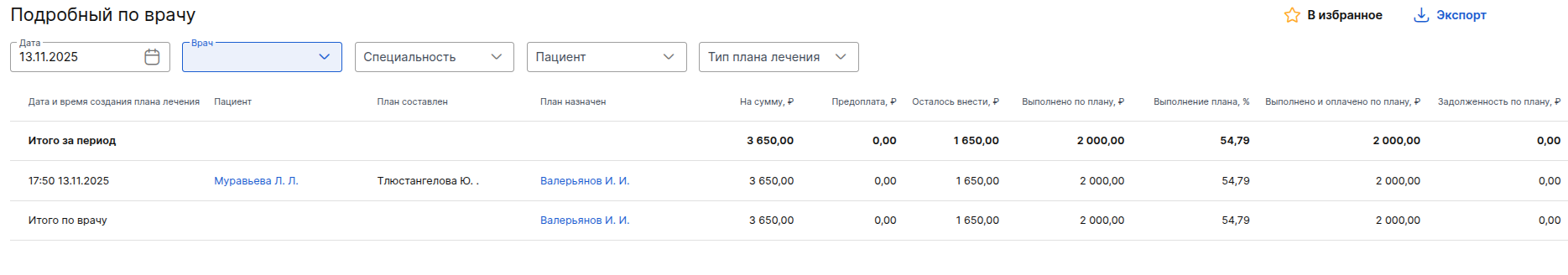 будут подробные данные: указан пациент из записи, сотрудник, который добавил услугу из плана лечения в запись - столбец план составлен