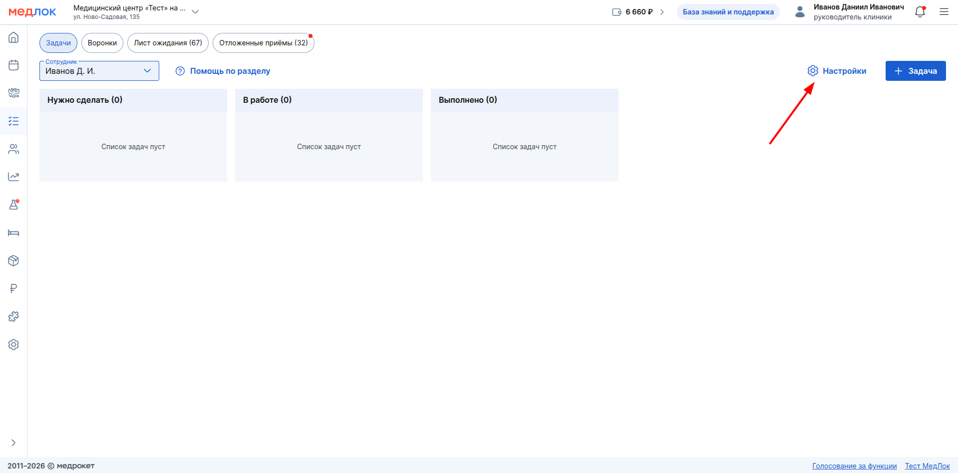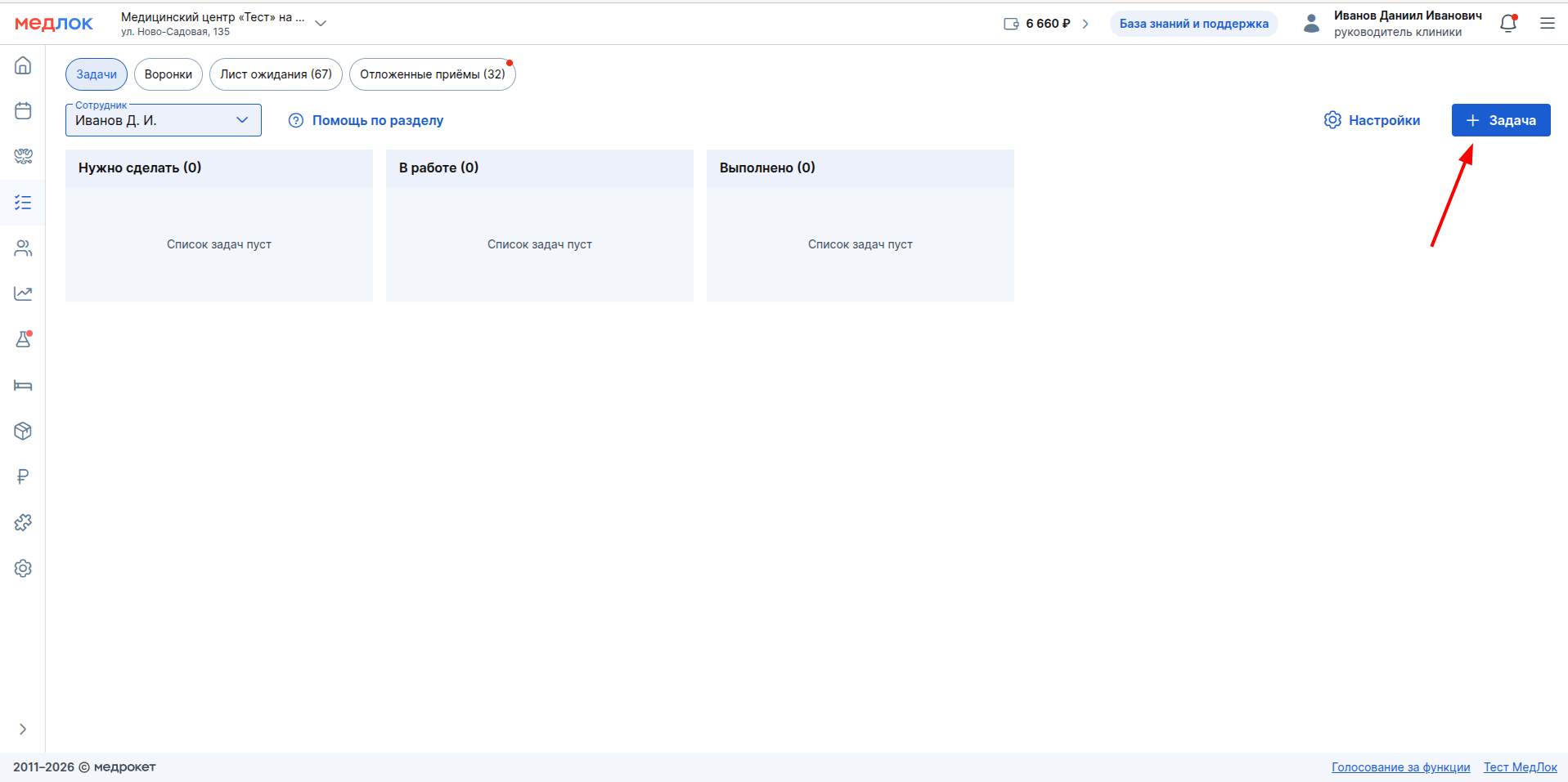 задач зависят от выданных вам прав. Права назначаются администратором.