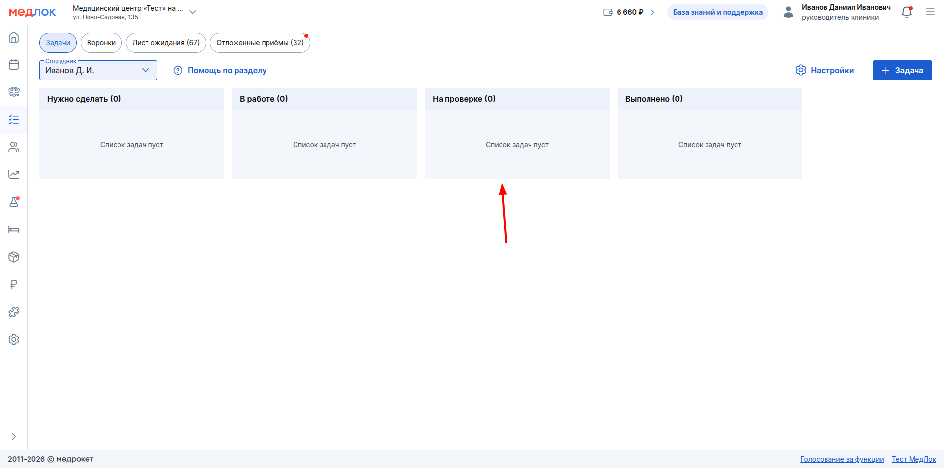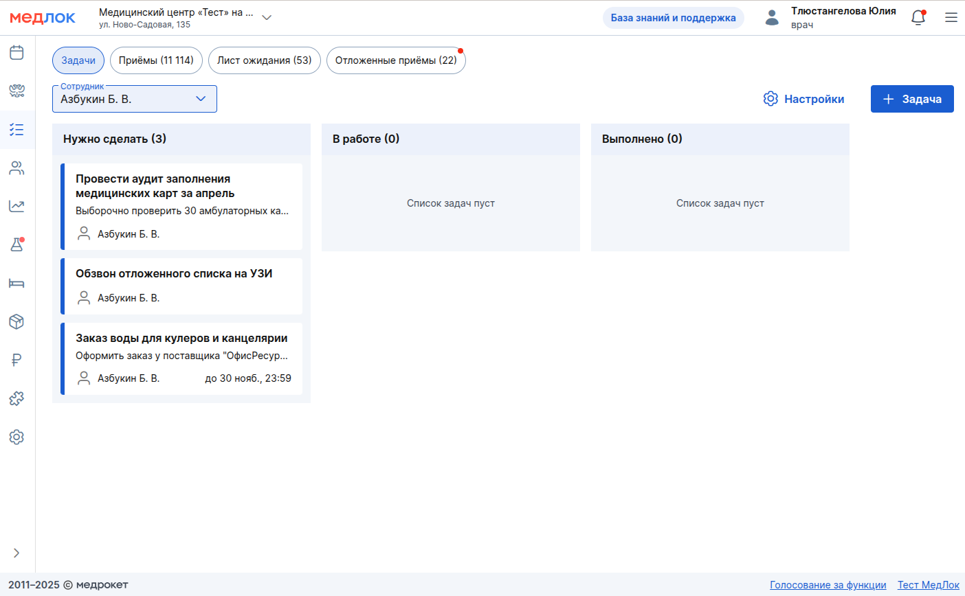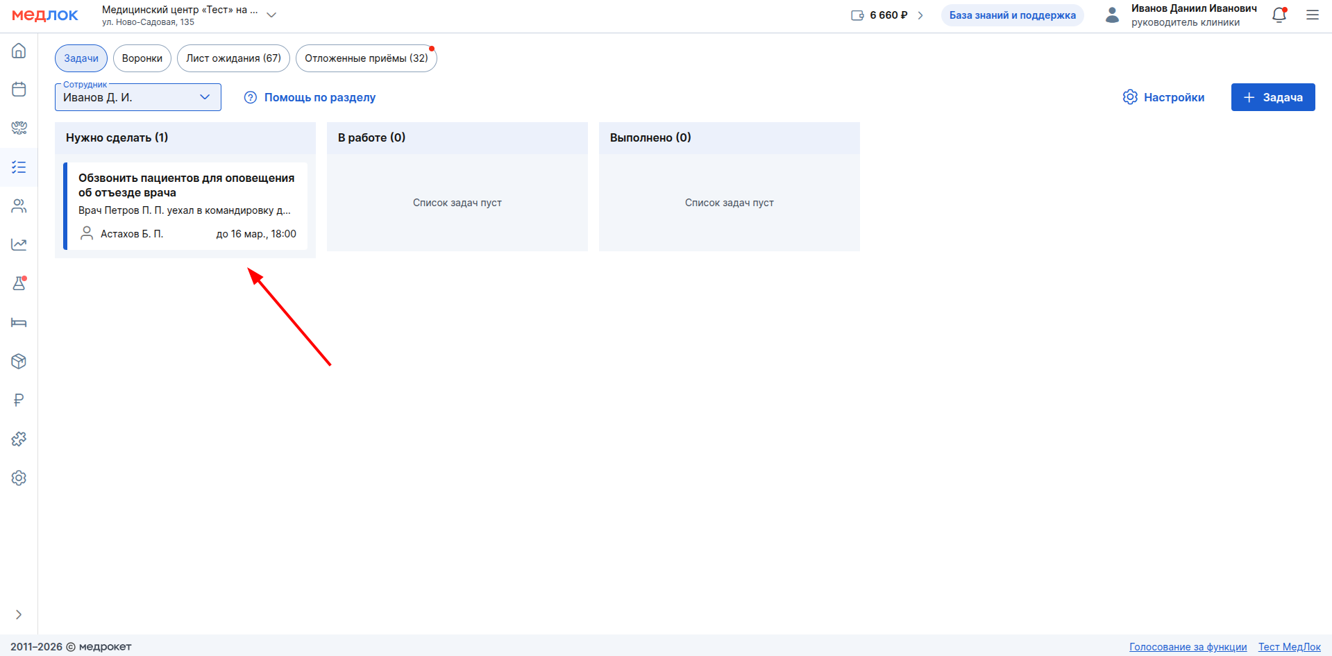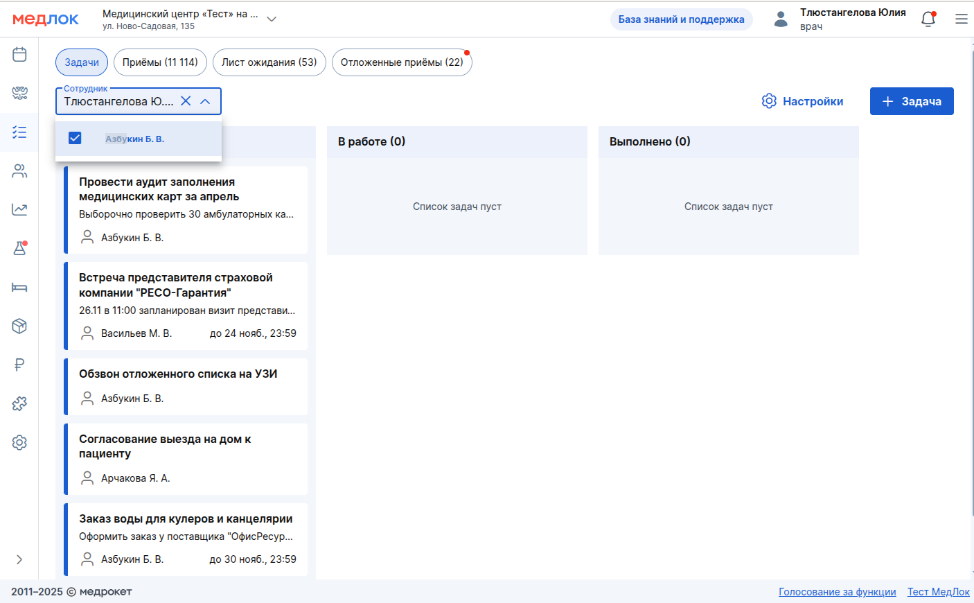 - Фильтрация: над доской расположен фильтр «Сотрудник».