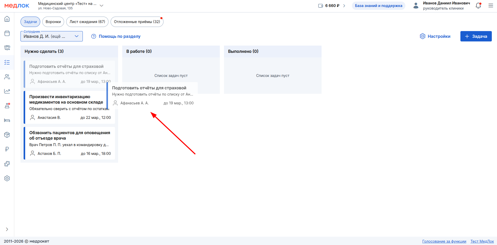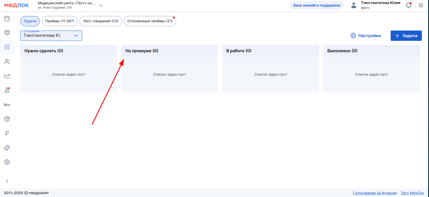 - Перетаскивание: чтобы изменить статус задачи, зажмите её и перетащите в другой столбец.