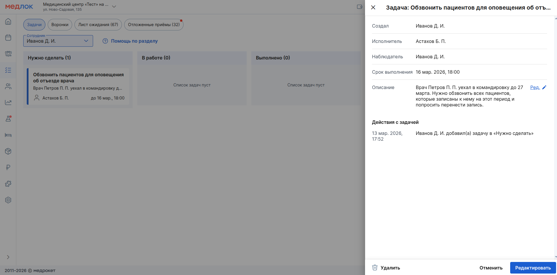 - «Редактировать» - доступно изменение всех полей задачи.