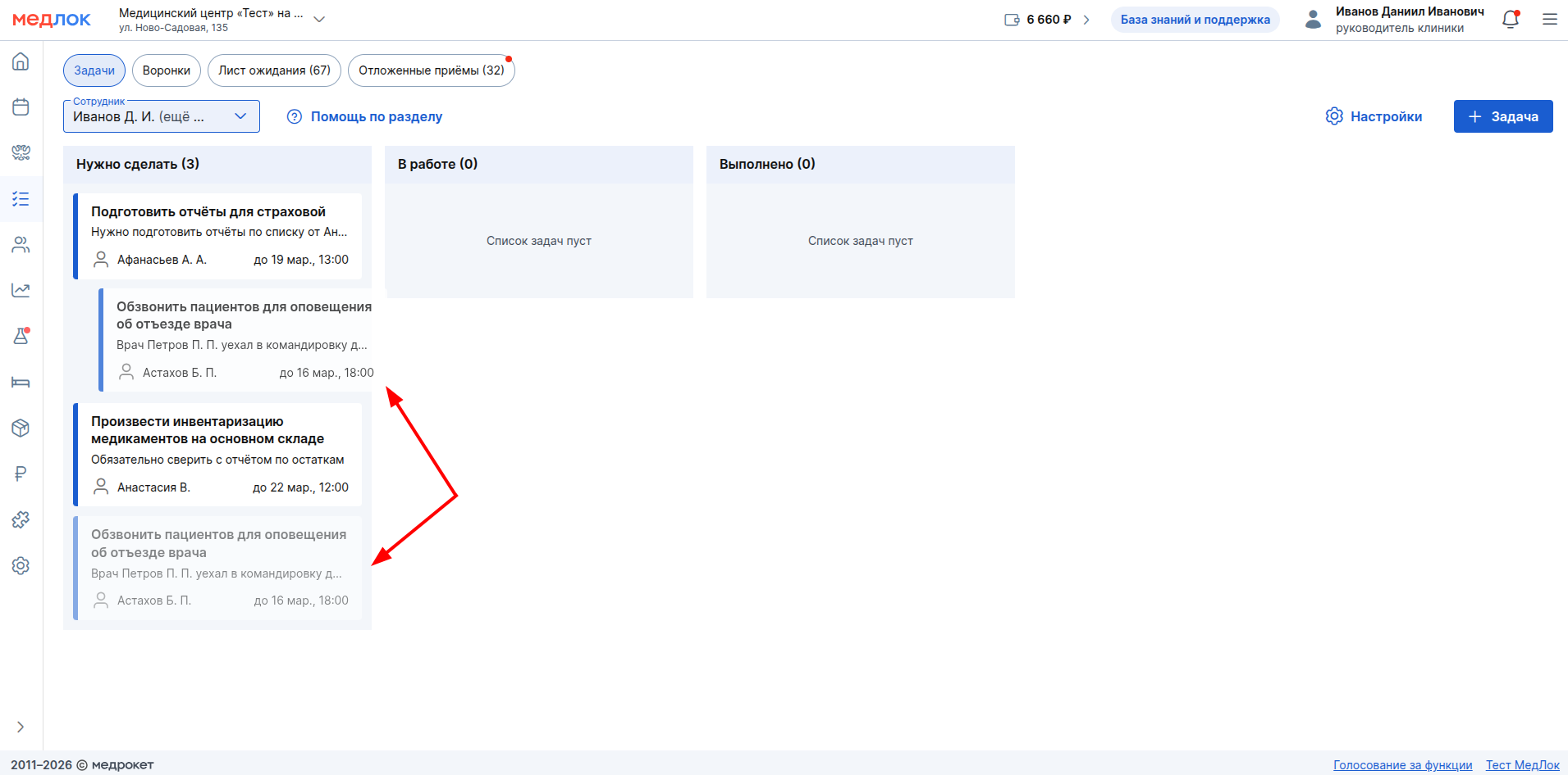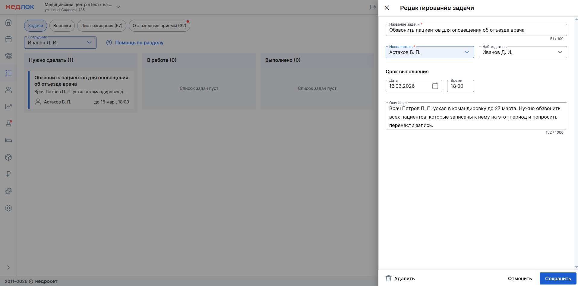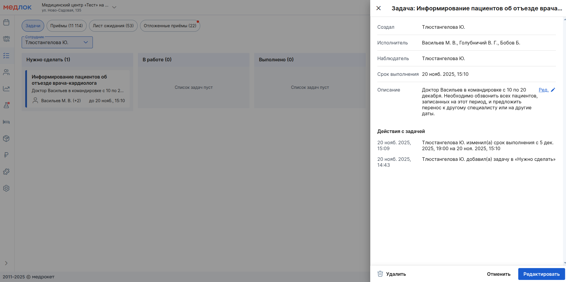 - полное редактирование и удаление любых задач.