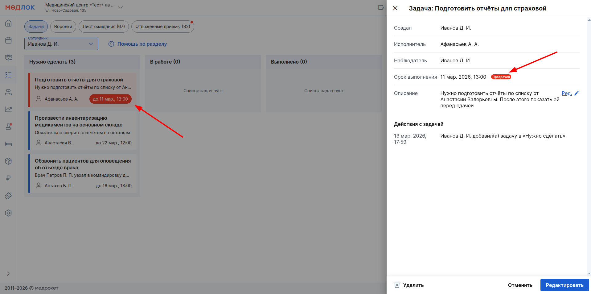 Просмотр, редактирование и удаление задач