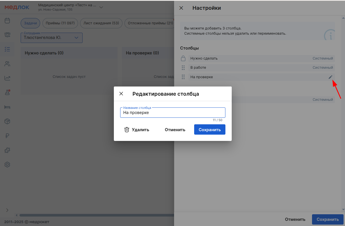 - при удалении столбца все задачи в нём будут безвозвратно удалены.