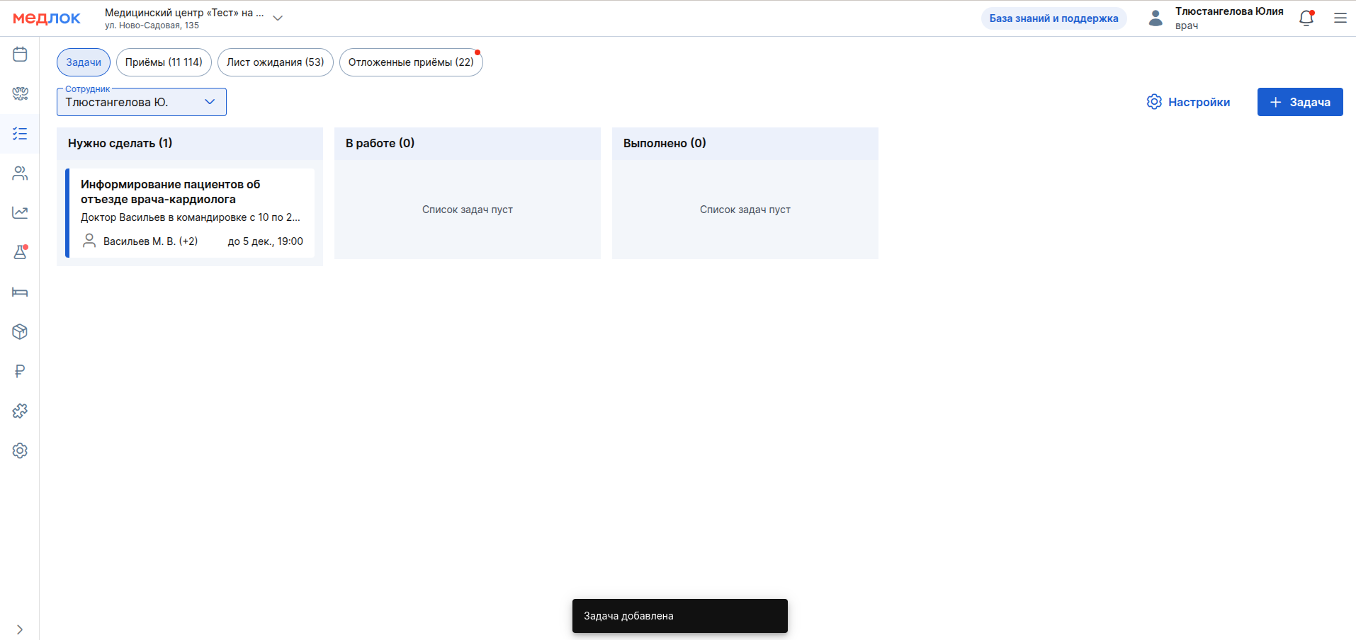 - создание новых задач;